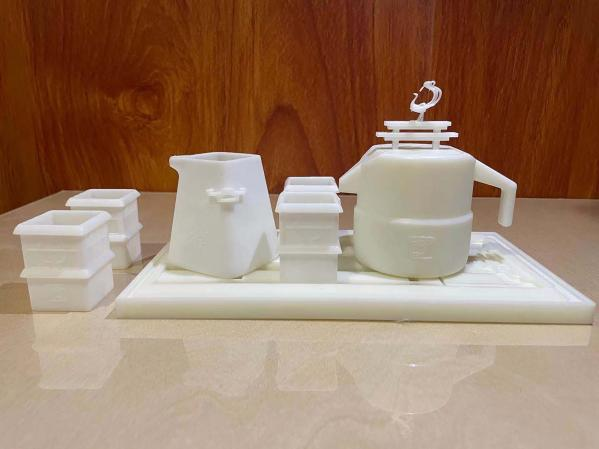 设计说明:本次设计为文化创意产品设计结合巴渠文化图案元素以及达州当地标志性建筑——凤凰楼为创作原型,融入茶具设计之中,分别为品茗杯、公道杯、茶壶、茶盘四类元素,取凤凰造型于于茶壶盖盖帽之上这与本就屹立于凤凰山之巅凤凰楼相符;再者,凤凰楼的上半部于唐代宫灯相似,取值造型于品茗杯,四个杯子组合与其相似,下半部取其正视图作为茶盘设计,又将其建筑元素加以精简用于公道杯侧面作为手握处,不仅提高了美观而且更是很好的防止烫伤,又将凤凰元素融入茶具的各类细节之处,整体取中华红为主调。