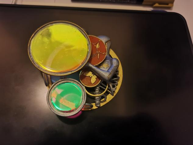 设计说明:整个设计从造型上来说,选择的中式首饰常用的多个几何图形叠加进行造型的设计。从配色上来说,选用的中式首饰配色常用的金银辅以红、橘红、绿这样的较为典型中式配色,使产品感官上更为复古。从叙事性来说,赛博朋克风元素和中国民间传统故事两者来看,是前者辅助后者来讲故事,主题还是传统的民间故事,赛博朋克风的加入只是使故事的时间从古代到反映现代社会。整个设计赛博朋克风的融入更像是打破首饰规矩性的一记重锤,使整个作品视觉感官更为强烈,是一种点缀的作用。赛博朋克风是传递的“高科技,低生活”思想。产品中式首饰运用素材《聊斋志异》也是通过各种奇闻轶事来讽刺当时的社会问题。两者的结合是想传递出:时代的发展,网络世界的完善,在带给我们便利的同时也处处充满诱惑,暗藏危险。接触网络的一个庞大群体“年轻人”也正是受害者。近年来各种“网贷”、“校园贷”、“传销”问题层出不穷,我设计这个系列产品也是想要揭露这些年轻人容易接触的社会问题,作为一个警醒的作用。同时与《聊斋志异》的讽刺社会风气一样,这个系列作品也是对现代网络陷阱问题,现代社会美好的表象,暗地各种犯罪者,不法分子的揭露。当然,在反映问题的同时,也是通过这种具有趣味性的“比喻”来提醒消费者,面对这些“绚丽”的外表,我们需要擦亮眼睛,避免自己踏进圈套。