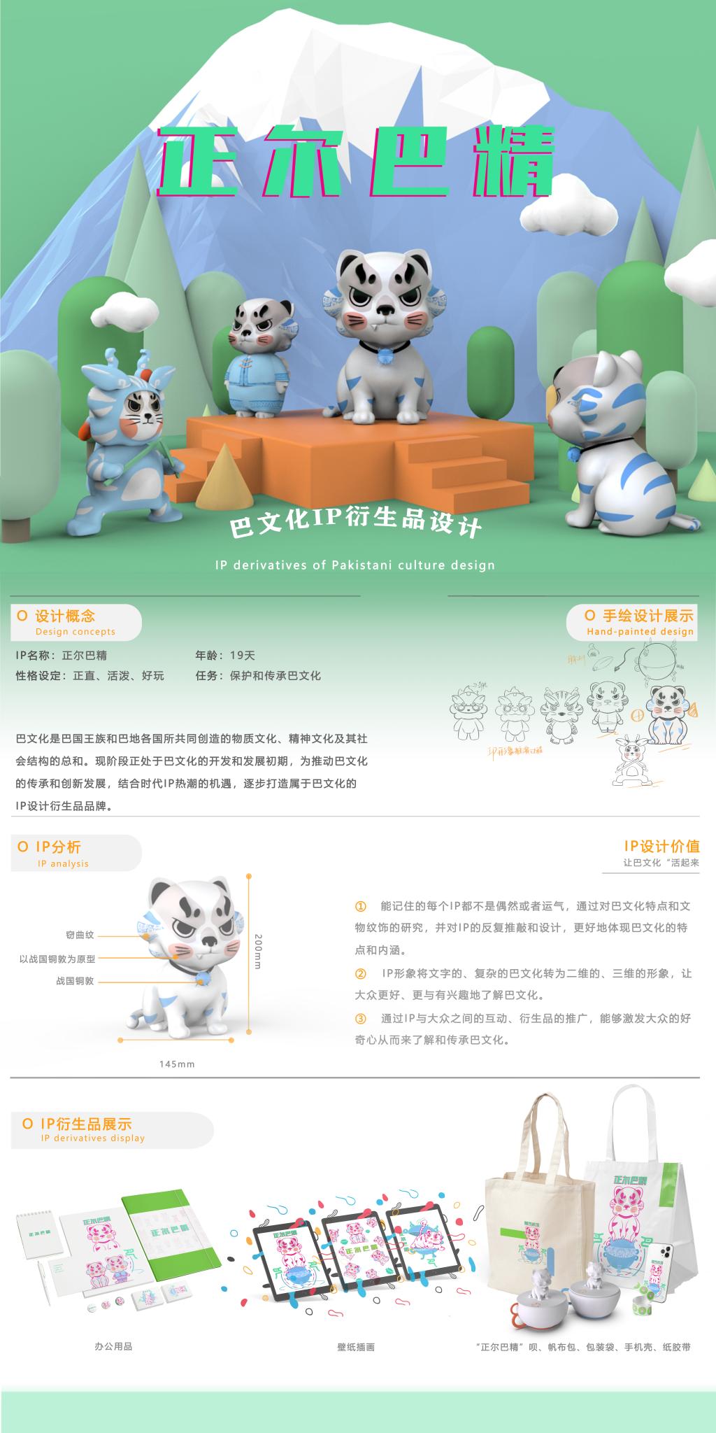 设计说明:巴文化是巴国王族和巴地各国所共同创造的物质文化、精神文化及其社会结构的总和。现阶段正处于巴文化的开发和发展初期,为推动巴文化的传承和创新发展,结合时代IP热潮的机遇,逐步打造属于巴文化的IP设计衍生品品牌。巴文化的特点和显著形象提出巴文化IP衍生品的现代化设计基础理念,在传承中创新并注重IP衍生品的情感表达和视觉体验。巴文化视域下的IP衍生品的开发与设计以文化资源为核心,提取巴文化内容,创作与时代结合、时代需求的IP形象,将严谨正派的巴文化转变为有形的、趣味、亲民的文化创意产品,与此同时打造IP故事化、情感化衍生品融入现代生活,拉进巴文化与大众之间的距离。