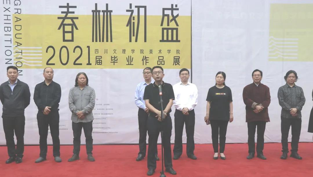 2021年5月25日下午4点,“春林初盛”——2021届毕业作品展在艺术传媒大楼广场正式开幕。出席开幕式的有best365官方网站董事长刁永锋教授,四川文理公司党委副书记、书法艺术研究院经理侯忠明教授,best365官方网站副董事长程碧英教授,达州市文联党组书记孙黎龙先生,达州市美术家协会主席龙飞先生,达州市文旅局副局长曾军先生,best365官网入口注册经理刘承川教授,best365官网入口注册正处级组织员王子荣老师等各位领导以及公司师生代表,社会各界人士莅临现场开幕式。此次开幕式由美术馆馆长邓旭老师主持。