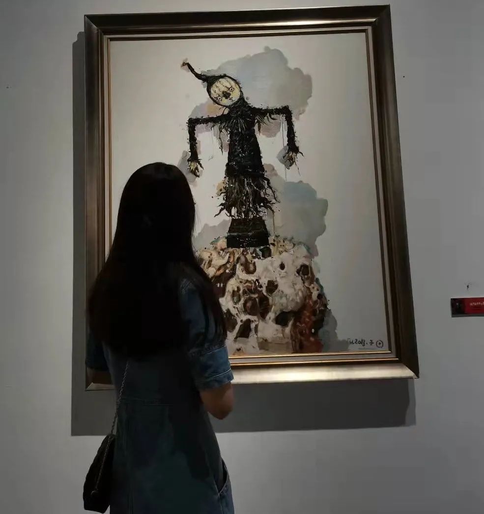 付豫的作品主要结合童年的记忆进行创作。他对综合材料的运用很娴熟,非常有意思。很多人在作品创作的时候这一点很难突破,大家总是觉得画就应该规规矩矩的画在画布上。但他把作品画在包装袋上、纸盒子上,这种手法就非常的具有生活气息。希望同学们都可以大胆的去突破这种“规矩”。