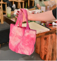 扎染:将自己设计好的图案用绘稿液描绘到布料上,用针线进行捆扎,然后放入水中浸透,取出稍晾,再放入已备好的染液中浸染一定时间,在不完全干时解开扎结处,最后用清水冲洗、晾干。