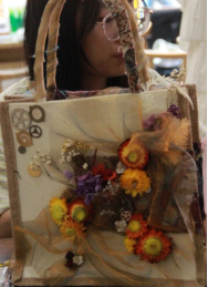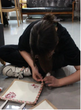 我们提前准备了帆布包,以及不同风格的DIY布料,贴纸和一些装饰小物,以及一些基本工具。主持人宣布活动开始并且为我们举例讲解一些生活中的装饰艺术。