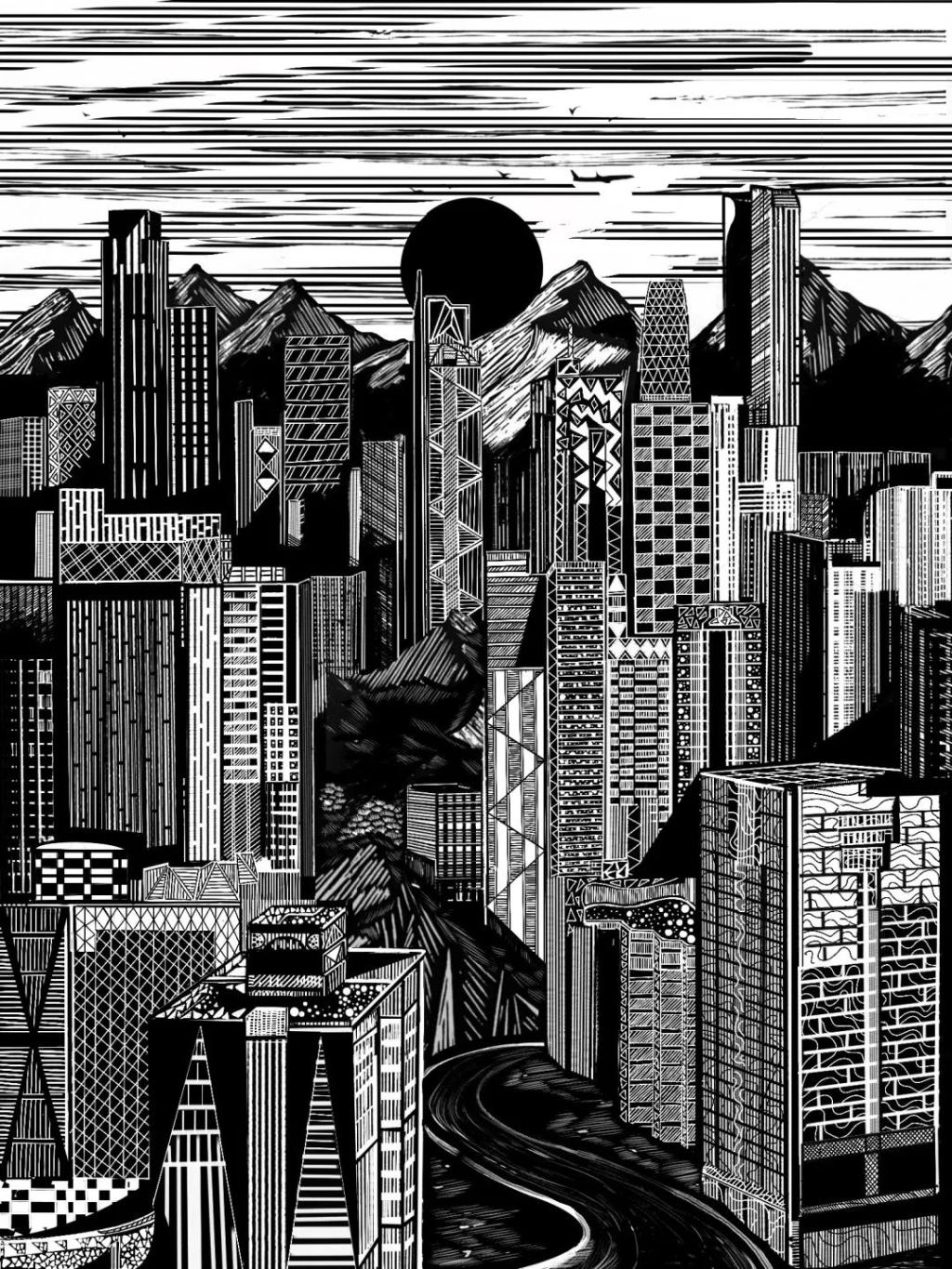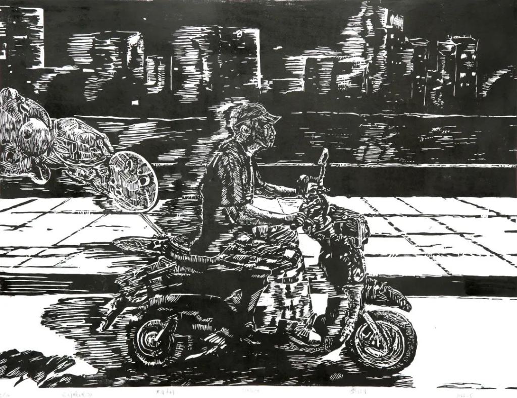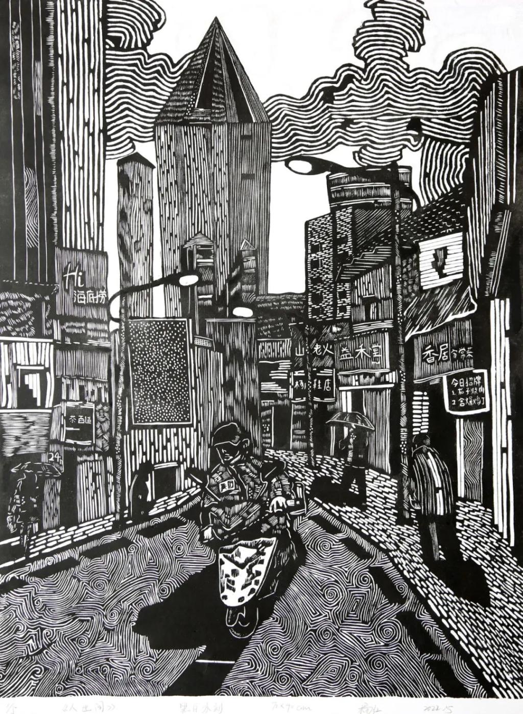 《渝生》何严怡 黑白木刻 60x90cm