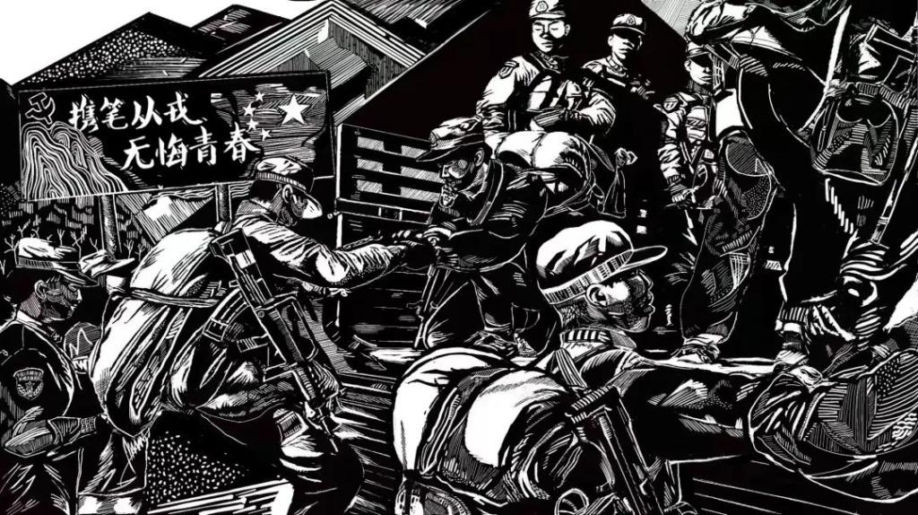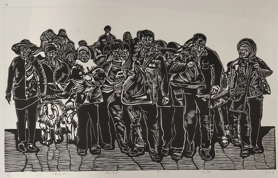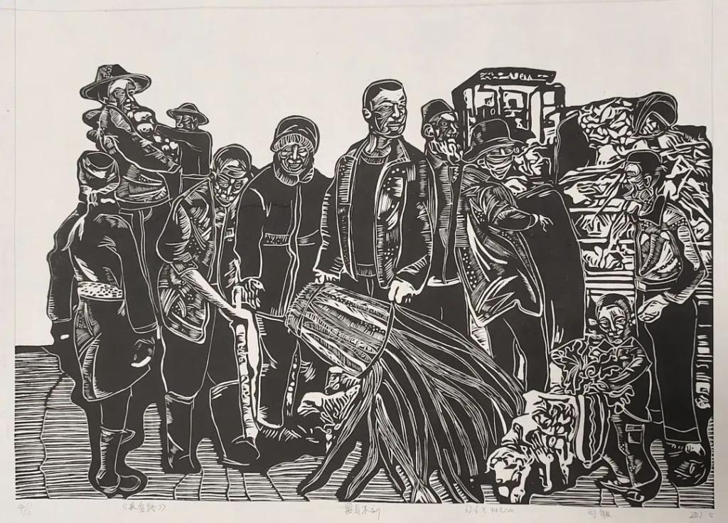 《秉旄》刘慧洁 黑白木刻 80x120cm