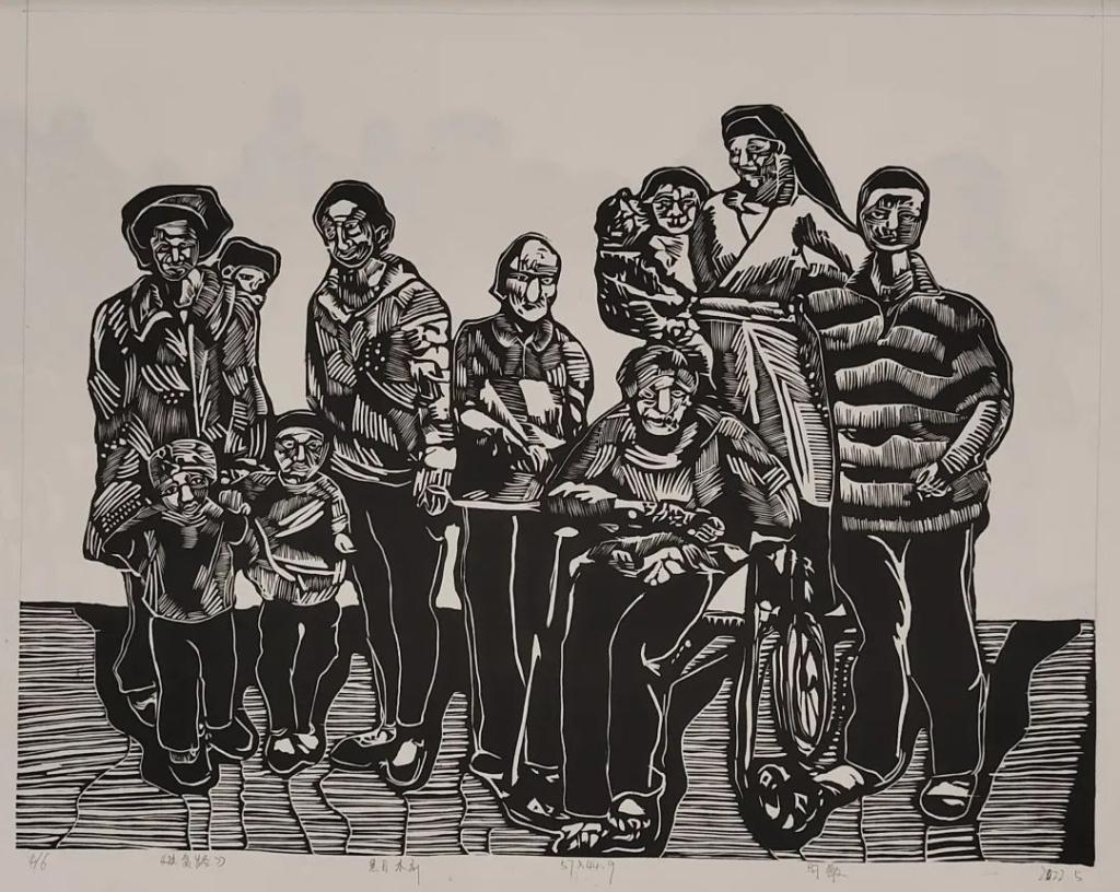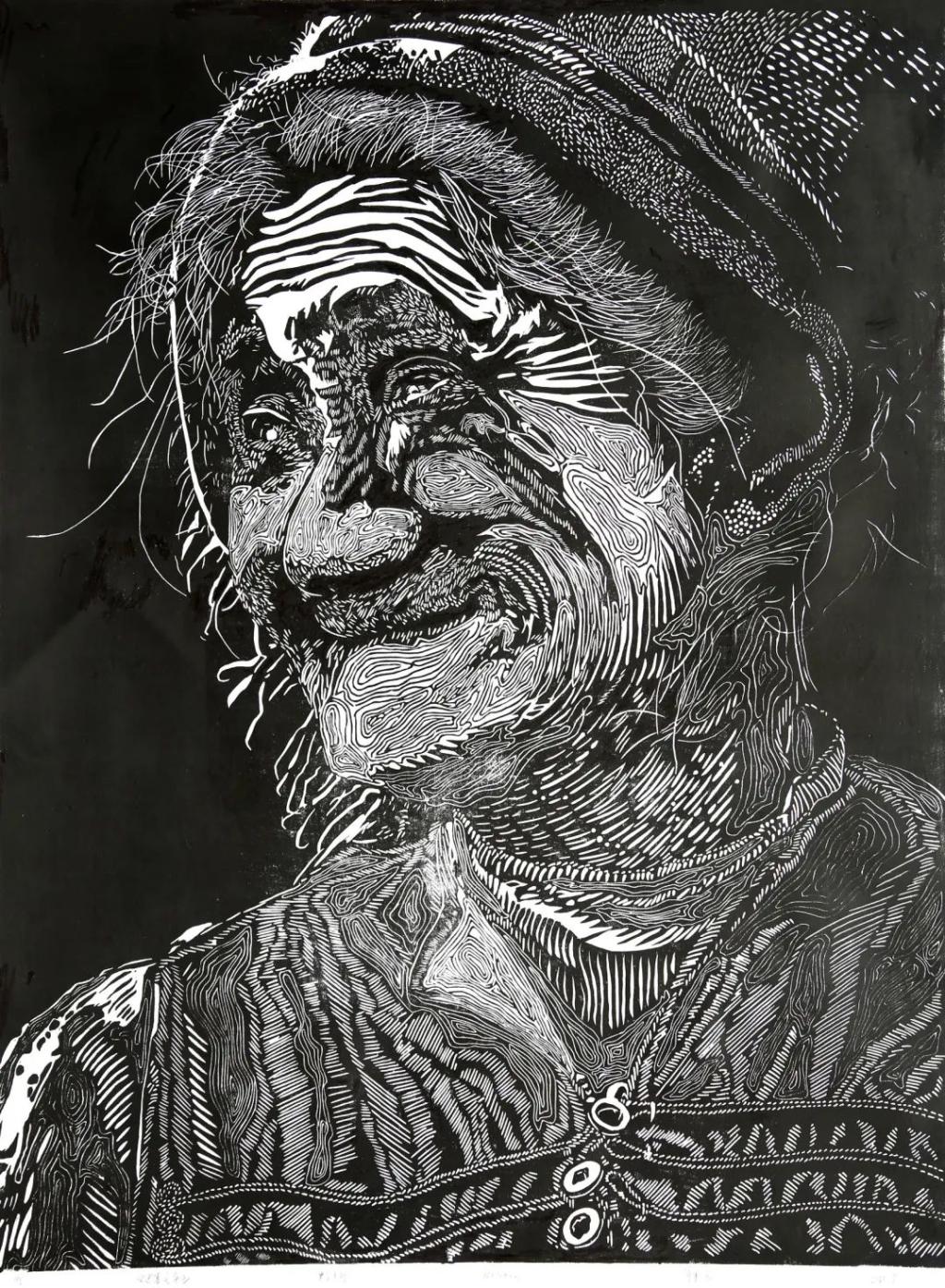 《迟暮之年》 何弟佳 黑白木刻 78x104cm