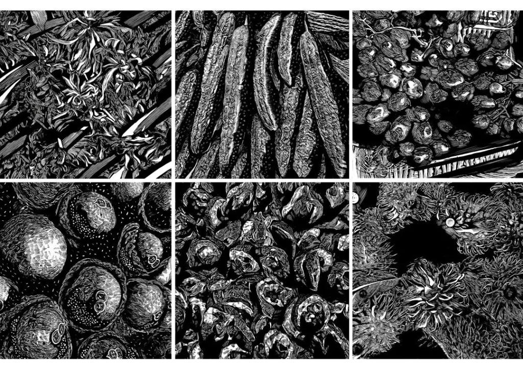 《生活记忆系列》罗宇 黑白木刻50x60cmx6