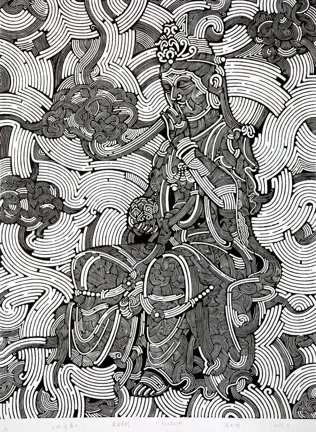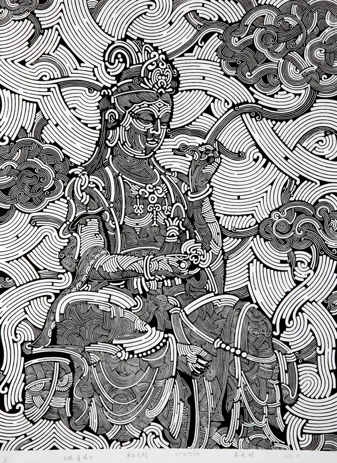 《观自在》 肖天明 黑白木刻 53x72cm