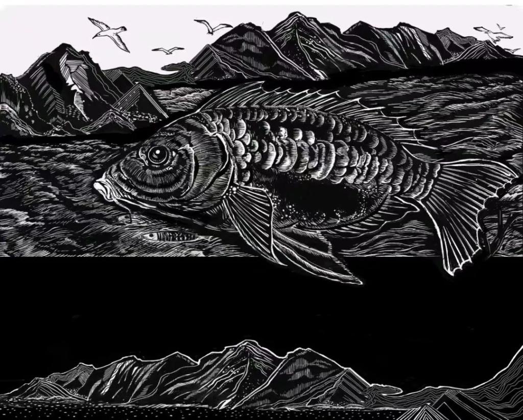 《纵壑之鱼》覃敏 黑白木刻 60x90cm