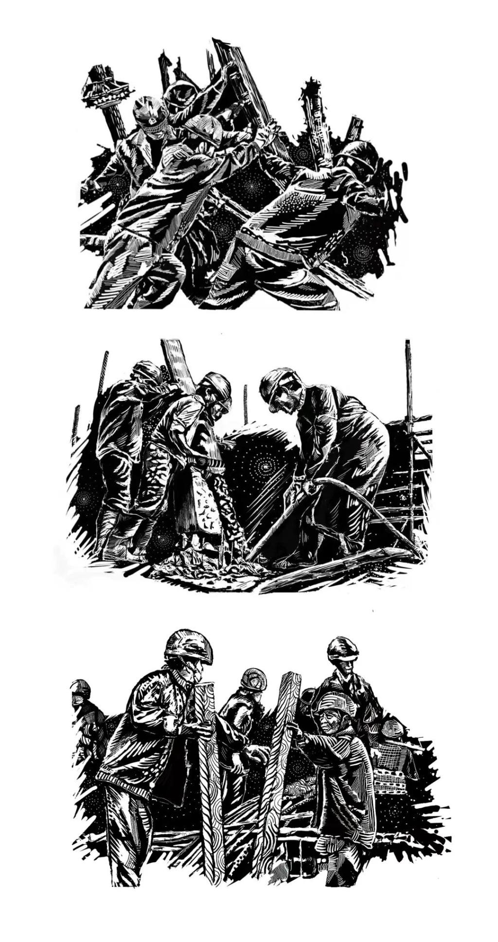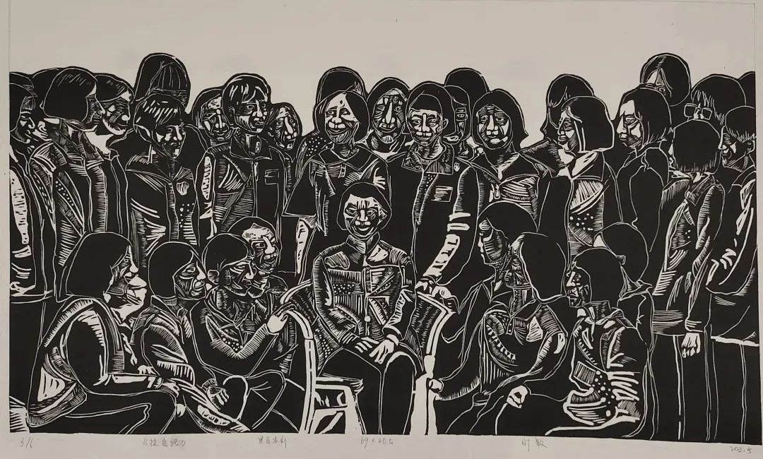 《创造者》任英 黑白木刻 60x80cmx3