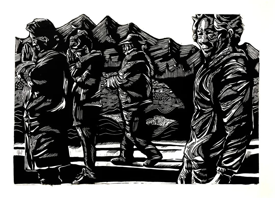 《朝圣者》王逸丹 黑白木刻 60x80cm