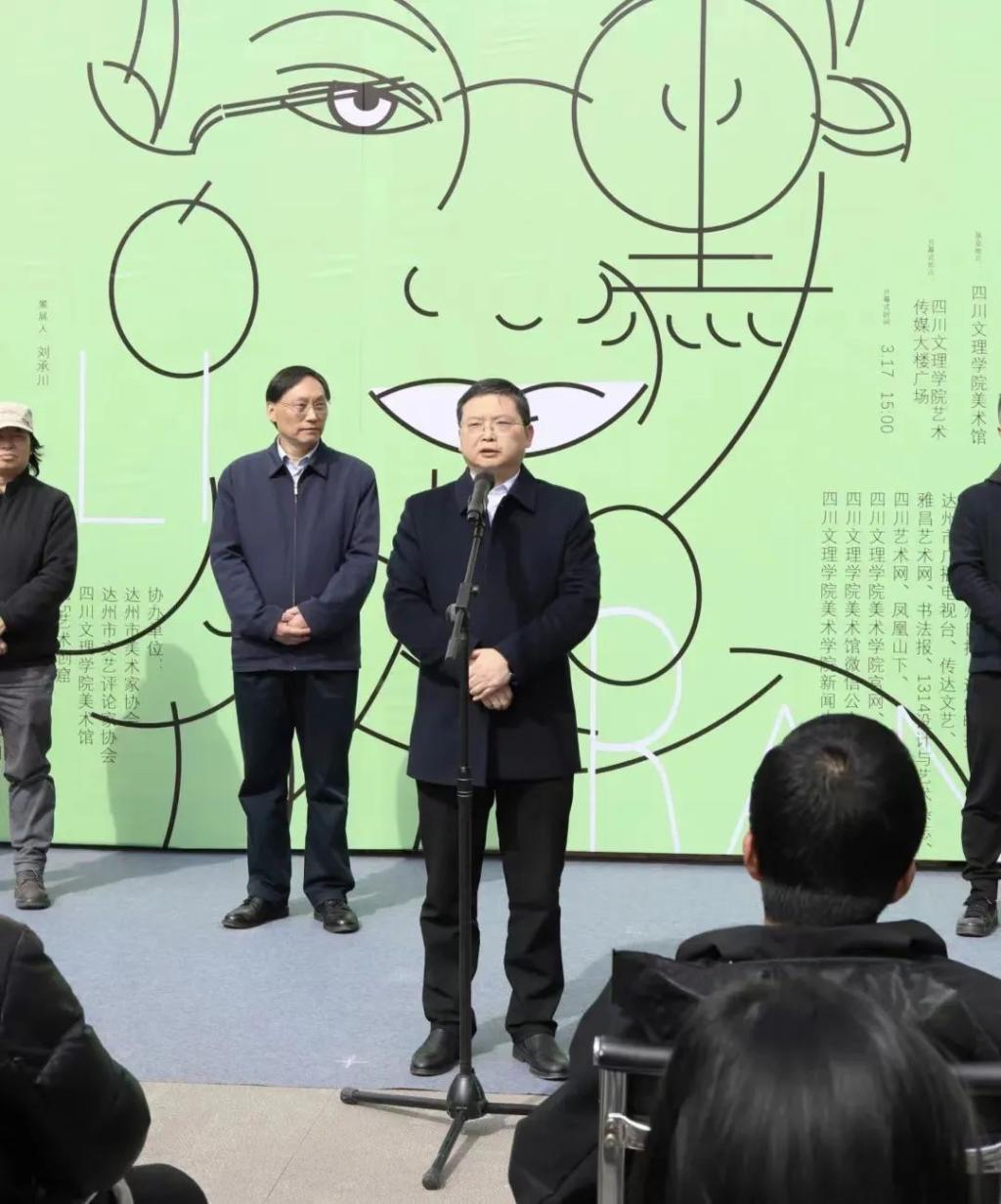 公司党委书记王成端、董事长侯忠明、达州市美术家协会主席龙飞、达州市广告协会会长熊毅、达州市第一中学党委书记向绍江、达州市515艺术创窟艺委会主任蒋晓树、员工工作办公室主任杨成林、团委书记成华军、美术公司党委书记罗江、经理刘承川以及易礼然员工的家人、朋友、老同学等出席了本次活动。美术馆馆长邓旭主持本活动开幕式。