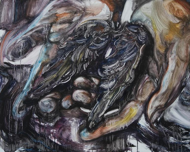 赖琳,《谁的翅膀掉了?》,布面油画,100x80cm
