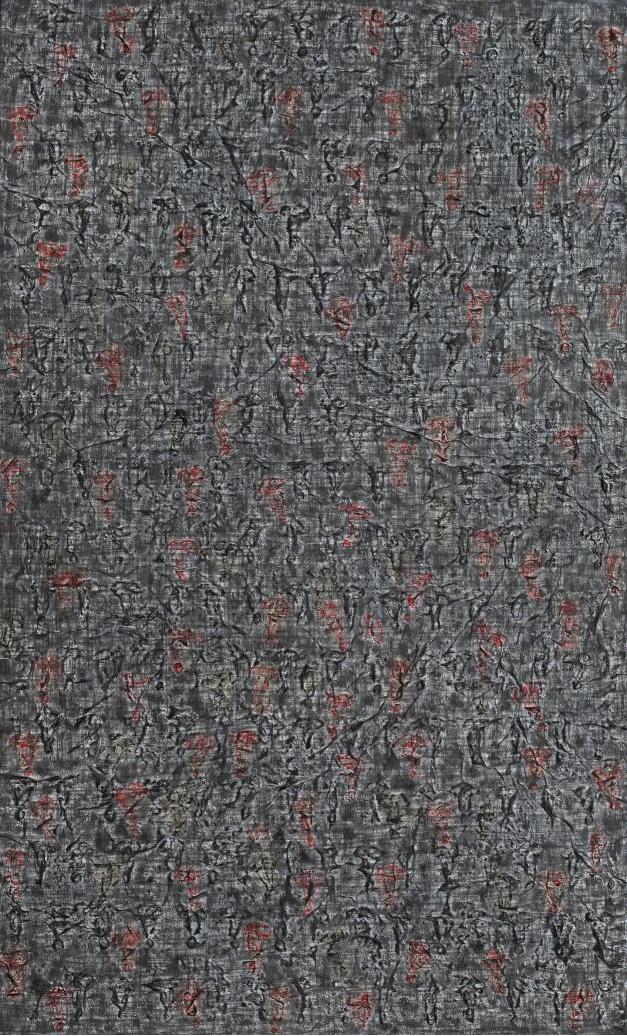 王毅,《游一5》,宣纸、墨、木炭条,200x100cm