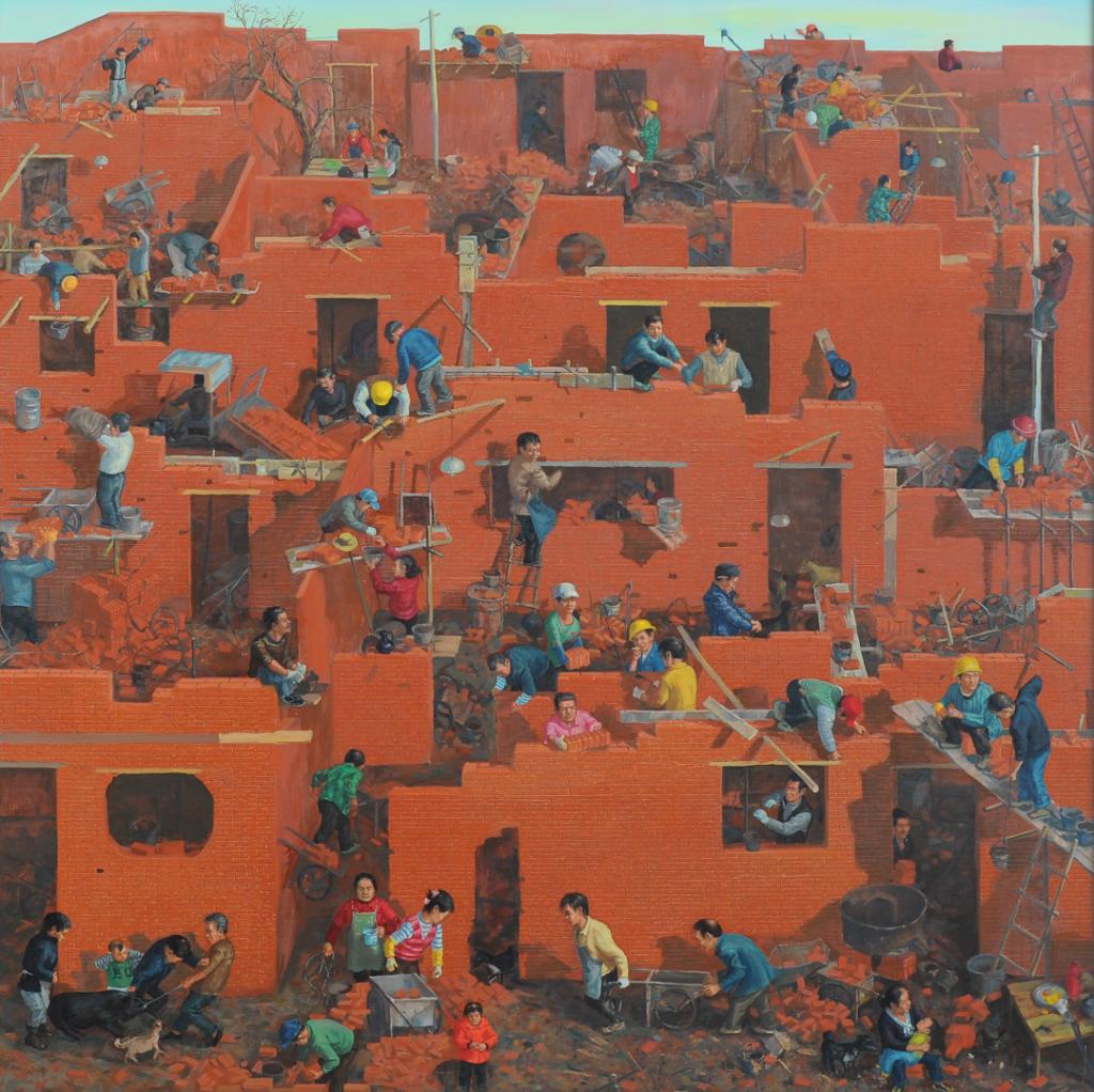 吴仕华,《新农村叙事之三》,布面油画,195x195cm