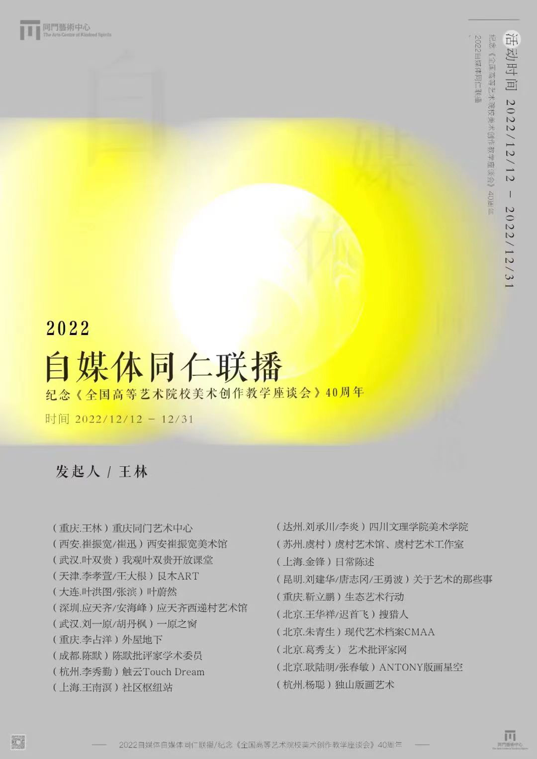 2022年度中国美术批评家年会主题为“自媒体与当代艺术批评”,我们以自媒体同仁联播的方式征集全国范围艺术家及批评家“创作教学”典型案例,与之呼应,以图文资讯及视频进行联播,以飨广大观众与读者。