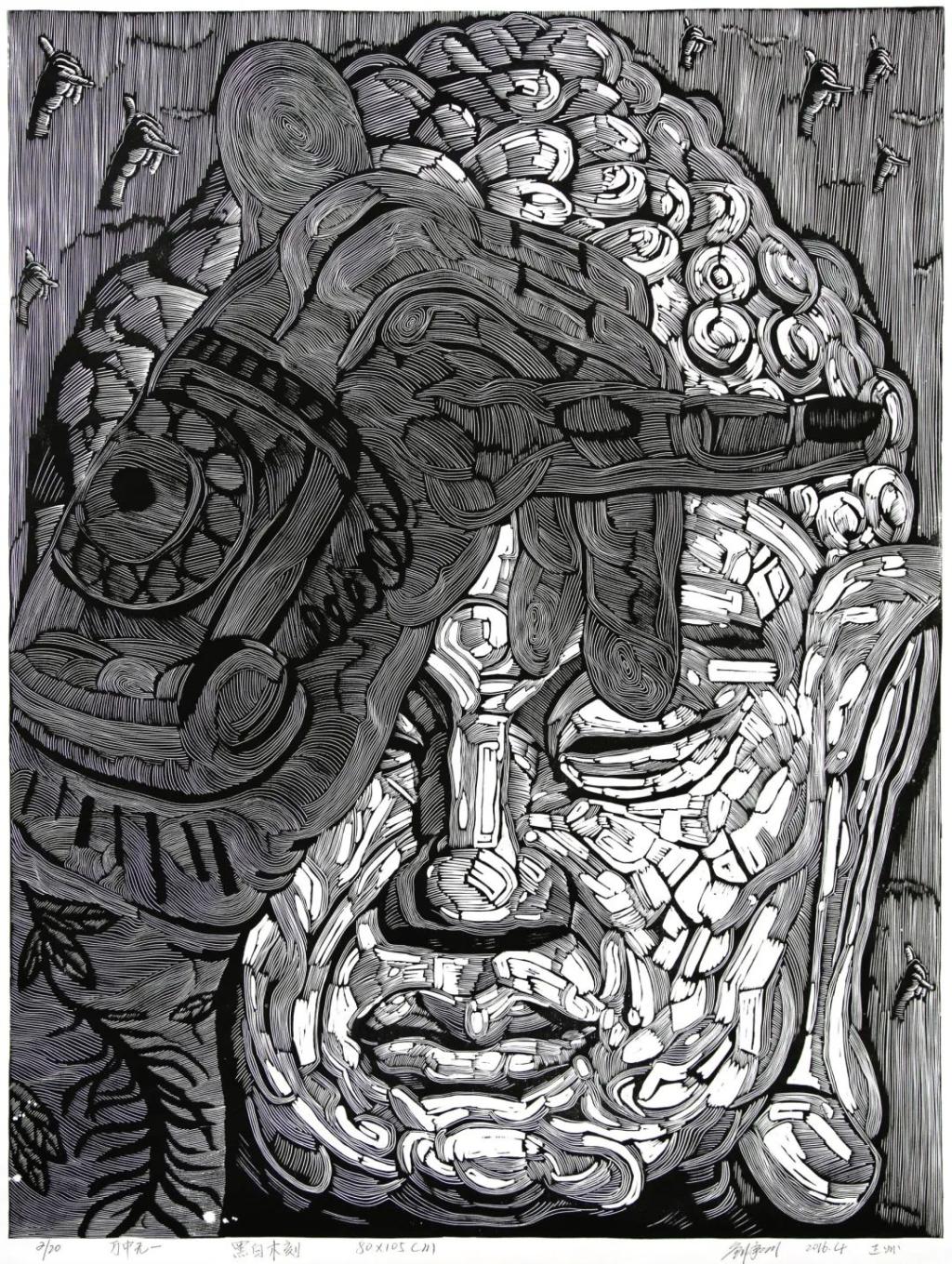 刘承川,《万中无一》,木刻版画