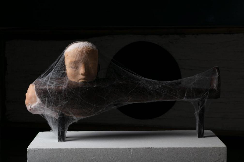 吴洪业,《我知道不是你了》,低温陶、石膏、蚕丝、钢材,85*25*45cm