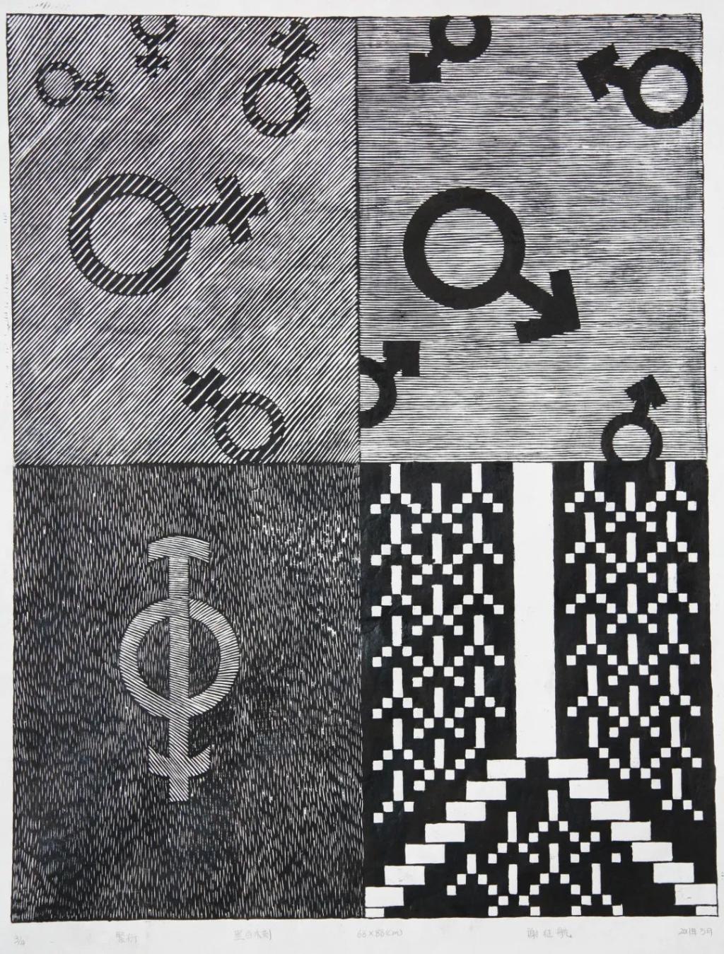 谢征航(员工),《繁衍》,黑白木刻,68x88cm
