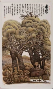 大山的巍峨与雄奇,是铸刻在他心中的信仰。他常说:“画画容易写字难,写字容易做人难”。在他心中,人品即画品、书品。他崇尚的人品,不仅有胡杨精神的坚忍与大漠的辽阔,更要有大山一样的雄强与拙厚。他魂牵梦绕的八台山、凤凰山、光雾山,诗画一般。在他基于深厚传统笔墨功夫基础上,自创“螺旋皴”及多种艺术手法,或块面、或明暗、或阴阳,都在尺幅天地间,尽彰笔墨的调谐与诗性,尽展巍峨与雄奇。他常用一方闲章“大山”,彰显了何文豪先生对巴山的特别情愫与信仰。巴山所彰显的气势与精神,不仅是基于生命的讴歌,更是他孜孜以求,躬耕砚田的人生追求。