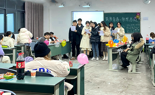 12月12日晚7:00,2019级1、2班在艺术传媒大楼4021开展了“筑梦青春,梦想起航"为主题的班级团建活动。