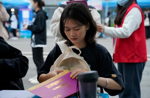 在志愿者们的帮助下,新生顺利完成身份核验、扫描入校码、领取报到单、校园卡等流程。公司报到处人头攒动,但秩序井然。