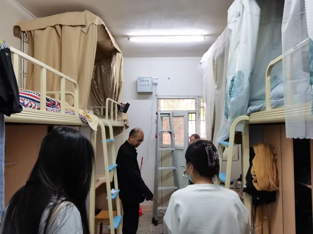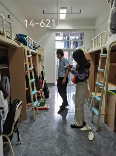 为深入员工宿舍,了解员工需求并检查宿舍是否存在安全隐患,2022年9月30日,best365官网入口注册主要领导、专职辅导员及部分员工代表前往公司员工所在宿舍走访、检查。其中,公司党总支书记罗江、专职辅导员沈瑶瑶主要走访十四舍、十五舍、十六舍;公司经理刘承川、组织员王子荣、党总支副书记王斌、副经理吴仕华、学工办主任贺艳洁以及专职辅导员杨书等老师主要走访一舍;副经理王勃凯与专职辅导员胡培兵主要走访二舍、三舍、五舍、九舍、十舍、十一舍等。