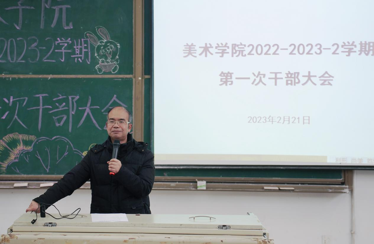 2023年2月21日中午12:40,best365官网入口注册于博文楼114教室召开了2022-2023-2学期第一次干部大会。会议由美术公司党委副书记王斌主持,学工办主任贺艳洁、专职辅导员胡培兵、杨书、沈瑶瑶、团总支员工会全体干部干事、各班班长、团支书参加会议。