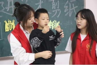 第一期以“走进艺术剪纸”为主题,志愿者们分别从理论、实践两方面帮助小朋友们了解剪纸的基本原理。第二期以“走进纸王国”为主题,志愿者们引导孩子们通过折一折、玩一玩等方式来与各种各样的纸进行游戏活动。第三期以“最早的剪纸•团花”为主题,志愿者们教给孩子们各式各样的折法并剪制图形,形成图案奇妙的团花剪纸作品。第四期以“立体创意•剪纸艺术”为主题,志愿者们带领孩子们深刻领悟剪纸内涵进行立体剪纸自我创作。在主讲同学的耐心引导下、志愿者们的热情帮助下,孩子们跃跃欲试,思维活跃,探索着自己的剪纸创作之路。他们时而埋头比划,时而停顿思索,指尖在各色各样的纸张上流转反复,纸张上的一笔一画都为他们童年绘上可爱的一笔。当各种惟妙惟肖的图案出现时,孩子们欢呼雀跃,深深感受到了中华优秀传统文化剪纸艺术的迷人魅力,孩子们也进一步认识并了解了剪纸艺术。