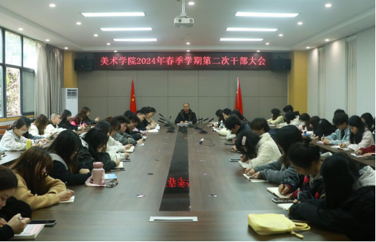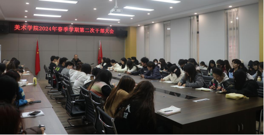 为完善新学期工作组织建设,形成良好的工作局面,best365官网入口注册于3月15日中午12:40在艺术传媒大楼1012召开2024年春季学期第二次干部大会。党委副书记王斌,学工办主任贺艳洁,专职辅导员胡培兵、杨书、沈瑶瑶、王兆旺、王誉燃及各员工部门代表、各班班长参加会议。会议由王斌主持。