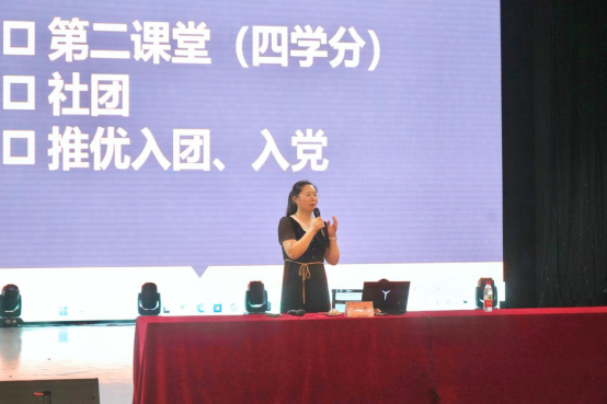 紧接着,贺艳洁重点介绍了共青团工作,详细讲解了推优入党、入团等相关要点,向新生强调了第二课堂及志愿服务的重要性。杨书针对国家助学贷款、国家奖助学金、资助政策等做了细致说明。