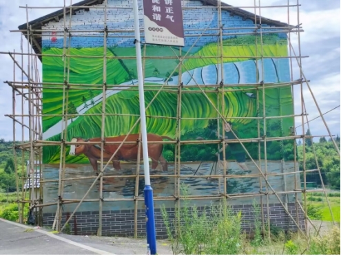 在绘画过程中,团队成员们干劲十足,从精心挑选素材、设计图案,到细致入微地打底稿、调色、上色,再到仔细勾勒线条和完善细节,每一步都凝聚着他们的心血与热情,“绘美乡村”志愿服务队的成员们充分发挥自己的专业特长,将一面面单调的白墙变成了丰富多彩的画卷,创作出一幅幅富有地方特色和文化内涵的墙绘作品。