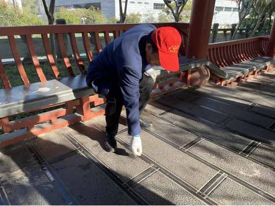 活动中,志愿者们以小组为单位陆续开始清理垃圾杂物、地面垃圾、栏杆及墙体污渍,志愿者们认真细心地清理着每一个角落。面对难以清理,志愿者们则细心对待,例如砖缝中的污渍,为了不损坏地面,会使用小刷子一遍一遍地刷。活动持续了两个小时,老师和同学们用自己的双手为师生们营造了舒适、整洁的生活环境。