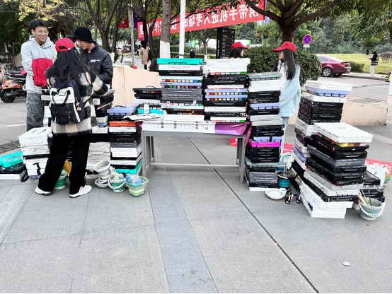 在活动现场,公司志愿者分工明确,各司其职,积极号召联考学子捐赠画材,有序组织每位献爱心的考生顺利捐赠。一盒盒颜料、一件件画材堆积起来是全场最靓丽的风景,更是爱与希望的汇聚。“人尽其善,物尽其用”。寒冷的天气并未阻挡志愿者和考生们关爱特殊儿童的热情,他们的爱心行动为校园增添了几抹暖意。