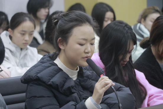 国家奖学金获奖代表屈晴川同学在发言中分享了自己的成长经历。她三年总成绩位列年级第二,曾获国家励志奖学金、校级优秀员工奖学金等荣誉,在专业与文学领域均展现出扎实的实践能力。她表示,这份荣誉离不开国家政策的扶持、公司公司的培养、师长的教导和同窗的帮助,未来必将常怀感恩,砥砺前行,不负期望。
