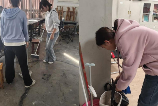 活动期间,同学们以专业或班级为单位,组成多个劳动小组,有序投入到校园各个区域的清洁美化工作中。一抹抹忙碌的身影成为校园里生动的风景:有的同学手持抹布,细心擦拭着楼梯栏杆与公共设施,让金属焕发光泽;有的同学挥动扫帚,认真清扫楼道与庭院,不留卫生死角;还有的同学俯身于绿化带间,耐心拔除杂草、清理落叶,守护那一方青翠。大家分工明确,配合默契,在汗水中体会协作的快乐,于细节处践行认真的态度。