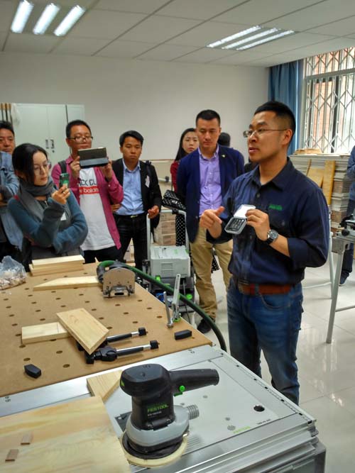 作为专业的木工工具系统及解决方案供应商德国费斯托(FESTOOL)具有很强的安全性,其产品集中运用于产品造型设计、景观规划、建筑设计、室内空间设计、毕业设计等实践课程教学,能辅助员工完成设计模型制作,其产品系统对于本院产品设计、环境设计等相关设计课程的实践教学具有极强的支撑作用,对于提升同学们的动手能力、空间设计能力有较强的辅助作用。本次体验活动由主办方与西南民大系统的讲解了相关设备的操作要领、适用范围、操作技能等并要求学员亲手操作设备,体验产品性能。