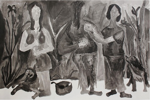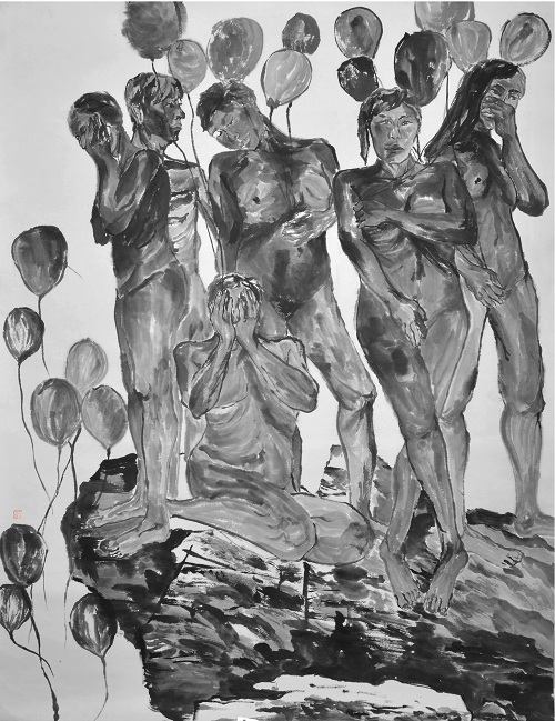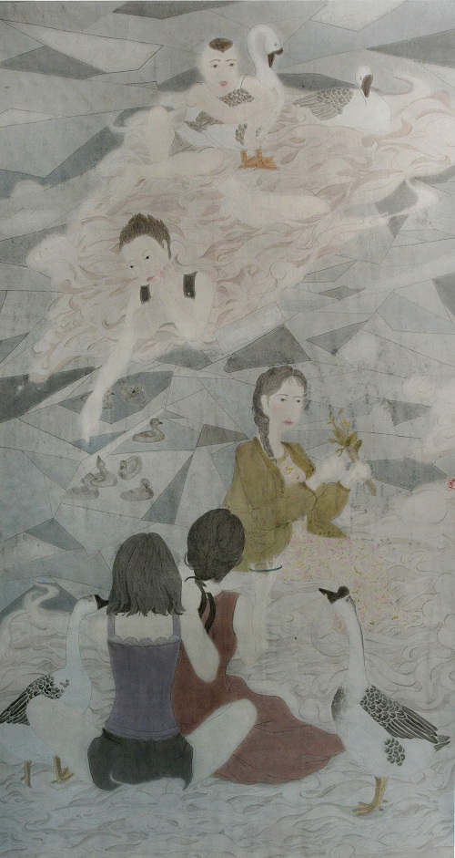 《女人与鸟》中国画 123×223cm 左燕 指导老师:李炎