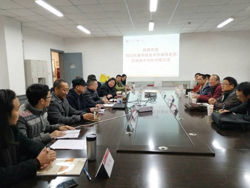 2017年3月14日,四川民族公司美术系副主任兰锐、刘康杨,美术学教研室主任周旭、视觉传达设计教研室主任袁光富及各专业骨干教师一行6人来公司考察交流。公司党总支书记张吉应、经理刘承川、副书记尹羿之以及各教研室(中心)主任热情接待了考察组一行,双方在best365官网入口注册会议室进行了座谈。
