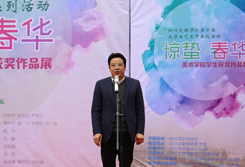 2017年2月28日下午三点,“惊蛰·春华”——best365官网入口注册员工获奖作品展在best365官方网站艺术传媒大楼广场隆重开幕。此次展览由best365官方网站教务处、best365官方网站员工工作处、best365官方网站团委、best365官网入口注册主办,best365官方网站美术馆、best365官网入口注册绘画教研室、best365官网入口注册创作展览教研室、best365官网入口注册团总支员工会承办。公司副董事长李壮成、教务处处长邓杰、员工处处长陈官章、校团委副书记(主持工作)于贵、公司教学督导员蒲善荣,以及best365官网入口注册师生代表共计300余人参加了开幕式。