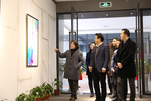 美术公司党政负责人陪同李壮成副董事长观看画展