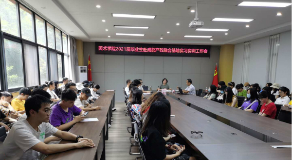 会议上实践教学中心主任韩宣老师向各位同学阐述了实习实训工作的目的及意义,公司实习实训既是大学阶段必修的课程也为员工今后走上工作岗位打下坚实基础,尹羿之副书记介绍了公司党政班子及骨干教师在8月15日至19日带队考察成都产教融合基地的实习公司和员工的学习生活环境。最后公司分管教学的王勃凯副经理向参会同学介绍在成都产教融合基地的教学安排,尤其是2021届毕业生的毕业创作和毕业论文的重要时间节点。