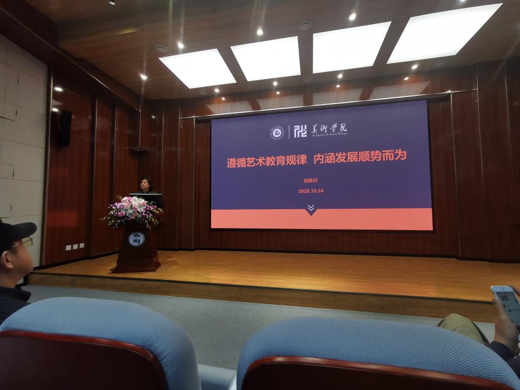 2020年10月24日best365官网入口注册经理刘承川、副经理王勃凯及best365官方网站美术馆邓旭出席了第六届全国师范大学美术教育高峰论坛。刘经理作为地方师范类院校代表在美术教育高峰论坛分会场从凝心聚力团队建设、硬件建设环境育人、美育阵地建设、四位一体办学特色、产教融合引领地方美育发展做了“遵循艺术教育规律、内涵发展顺势而为”的主题发言,受到与会领导、专家及各高校best365官网入口注册经理的高度认同。