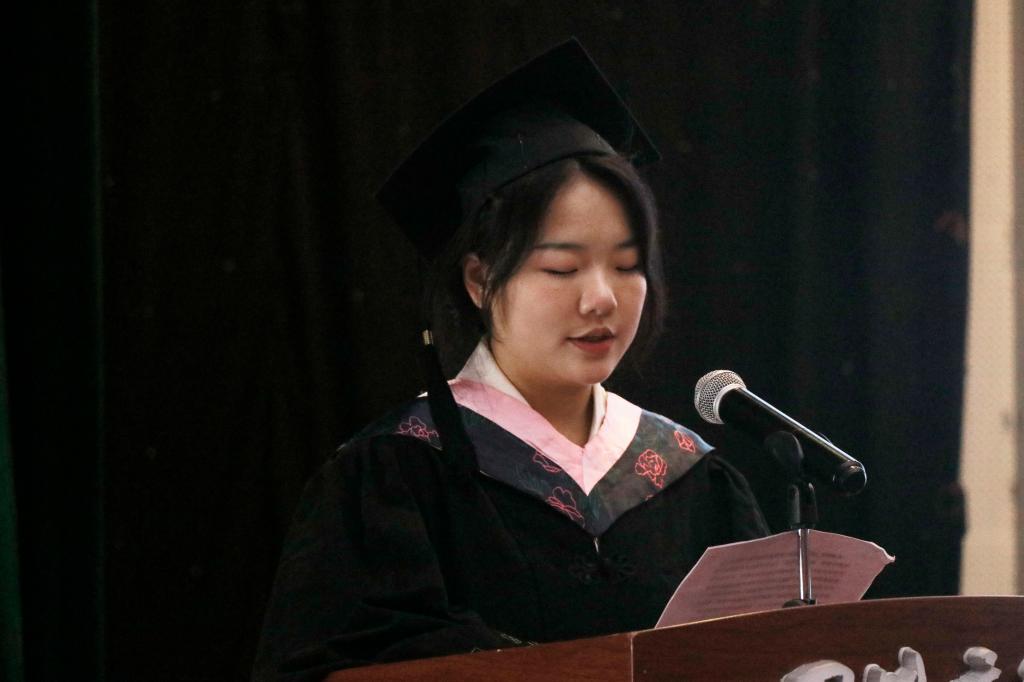 典礼上,公司教师代表傅姗姗老师发言,她希望同学们不怕跌倒、勇于拼搏,以积极乐观的态度面对生活,“成为有故事的人去做无故事的事”。公司修业班员工代表陈峻屹同学祝愿学长学姐们在逐梦远航中能披荆斩棘,勇往直前。毕业班员工代表谭慧芳同学表达了对公司栽培和温暖送别的感谢之情,对即将踏上征程的毕业生道声珍重,祝福母校的明天更加灿烂辉煌。