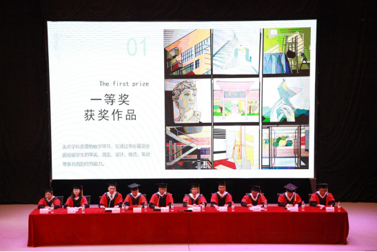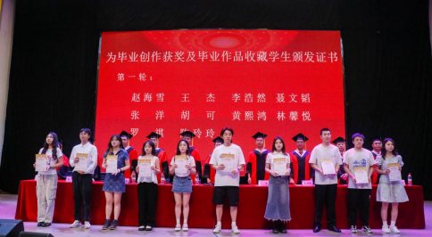 公司党政领导、学术委员会委员为毕业创作获奖作品收藏作品员工颁发证书。