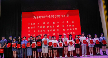随后,公司为考取研究生的同学赠送礼品,祝愿他们前程似锦。主席台老师为获得学士学位的毕业生拨穗授位并合影留念。
