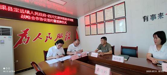 7月11日上午,best365官网入口注册与渠县定远镇人民政府战略合作协议签约暨实践教育基地授牌仪式在定远镇人民政府会议室举行。best365官网入口注册经理刘承川、党委委员黄崇岭、学工办主任贺艳洁,定远镇党委书记张雪梅、镇长郑卓林、党委副书记黄思雁、团寨村第一书记王天镓、团寨村支部书记张长春参加签约仪式。