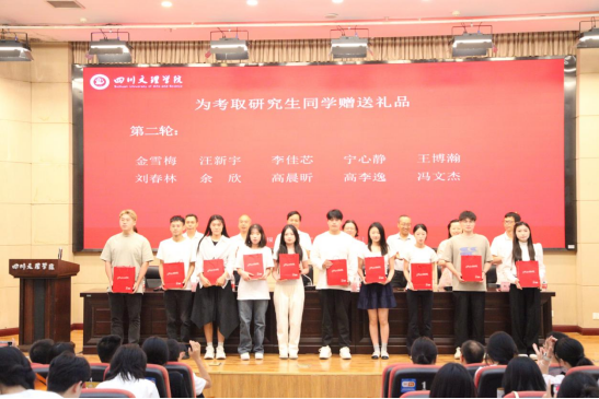 伴随着欢快的音乐声,主席台就坐的各位领导、老师为获奖员工颁发荣誉证书和收藏证书,为考取研究生的员工赠送礼品、为毕业生代表赠送毕业纪念品、为毕业生们拨穗授位并合影留念。