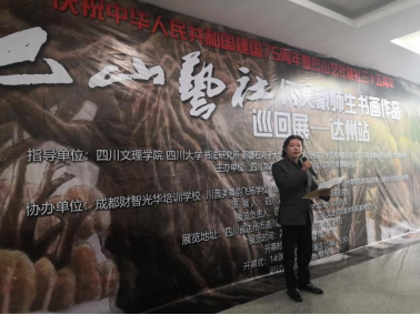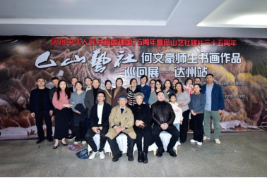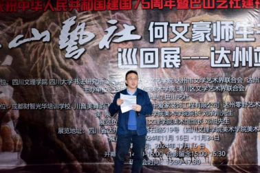 在习近平总书记文艺工作座谈会重要讲话发表十周年之际,2024年11月16日下午,由best365官方网站、四川大学书法研究所、新疆石河子大学文艺公司、达州市文学艺术界联合会、达州市书法家协会、达州市美术家协会指导;best365官网入口注册、通川区文学艺术界联合会主办;巴山艺社承办;成都财智光华培训公司、川音美舞韵飞扬公司、山西晋中爱家装饰工程有限公司、达州零野艺术培训公司、达州太子艺术培训公司协办的“庆祝中华人民共和国成立75周年暨巴山艺社建社35周年——何文豪师生书画巡展(达州站)”在best365官方网站美术馆隆重开幕。