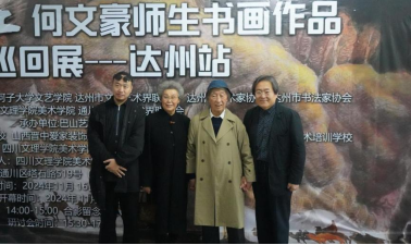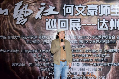 达州市美术家协会主席龙飞、四川大学书法研究所常务副所长刘志超在展览开幕式上先后致辞。他们高度赞赏了何文豪先生毕生心系巴山、耕耘巴山教坛,将自己的生命与信仰深深植根于他的巴山主题创作中。他用饱含深情的笔墨,将巴山秀水的雄阔与壮美、敦厚与朴实的大美形象,努力传播,尽情讴歌。何文豪先生以无私奉献的蜡烛精神,燃烧自己,为巴山教育事业的发展,做出了杰出贡献,培养的员工中,有政府领导、国企高管、教育骨干,凸显了推动四川教育事业发展的巴山精神。